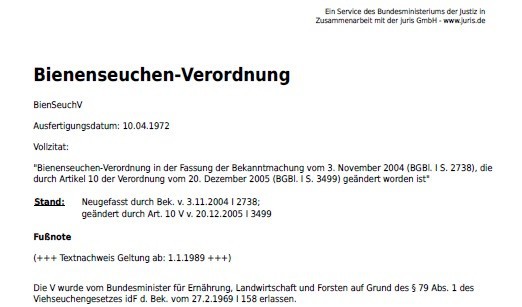Die BienSeuchV (HTML und PDF): www.gesetze-im-internet.de/bienseuchv
